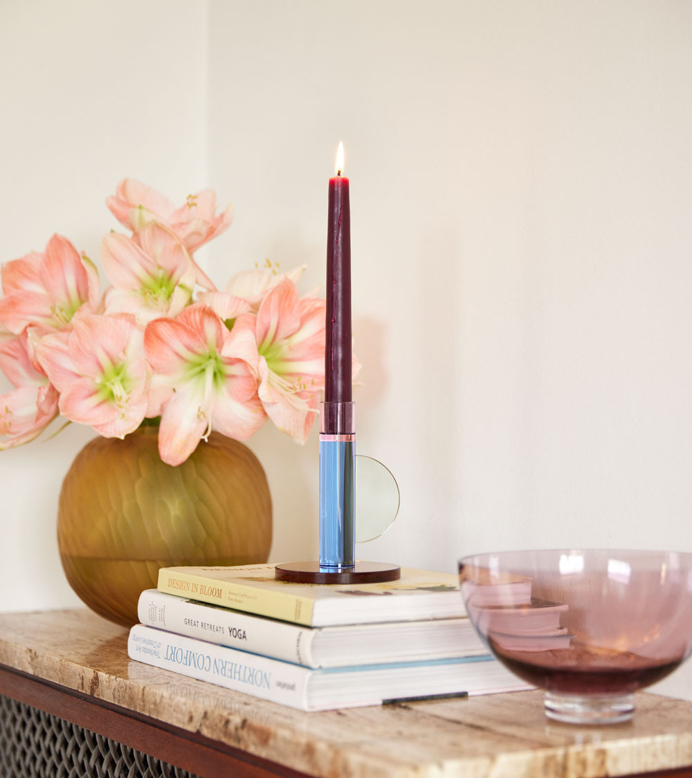 Le bougeoir Astro est un véritable objet de décoration pour les amateurs de design contemporain et de couleurs audacieuses. Son aspect coloré dans la masse garantit une intensité et une profondeur de couleur qui ne se dégradent pas avec le temps, faisant de ce bougeoir un investissement durable pour votre intérieur. Chaque pièce est légèrement différente, assurant un effet visuel unique et captivant.