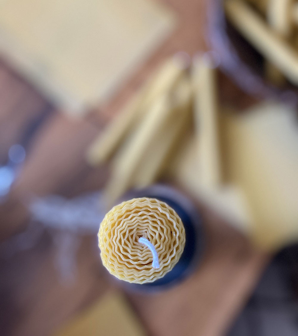 Ajoutez une touche authentique et chaleureuse à votre intérieur avec nos bougies en cire d'abeille 100% naturelle.