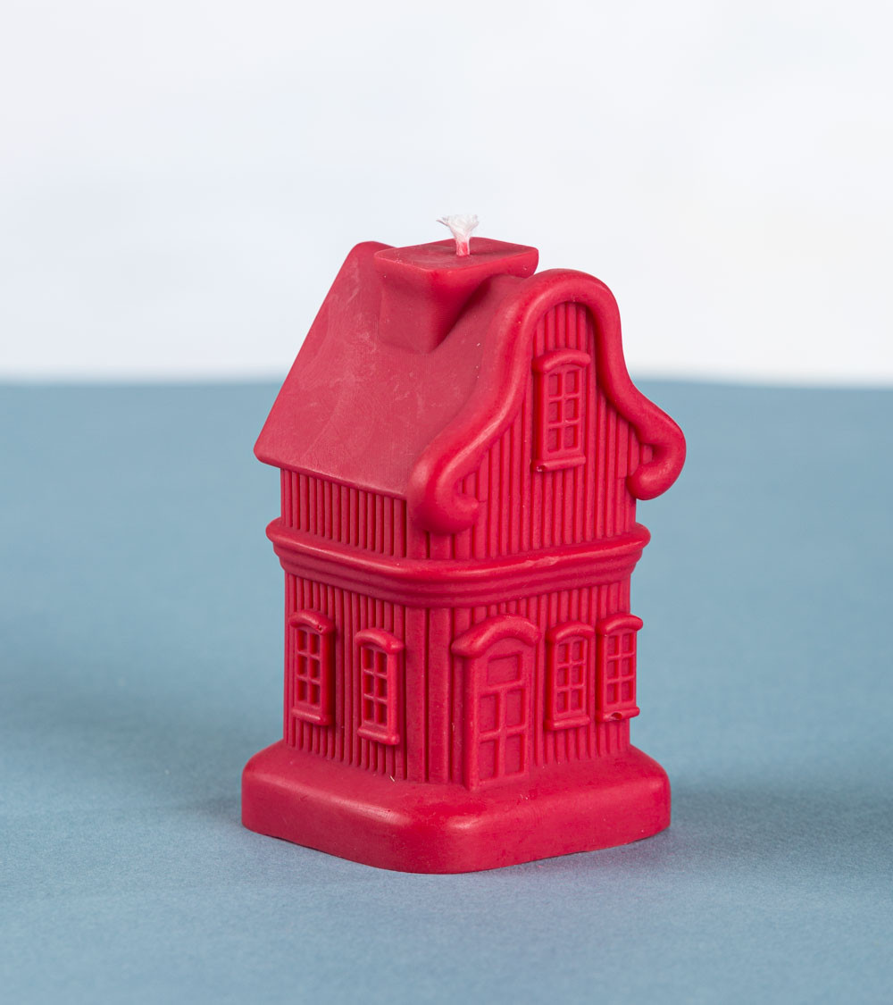 Bougie maison de Noël rouge Bordeaux naturelle - L 10 cm - H 6 cm