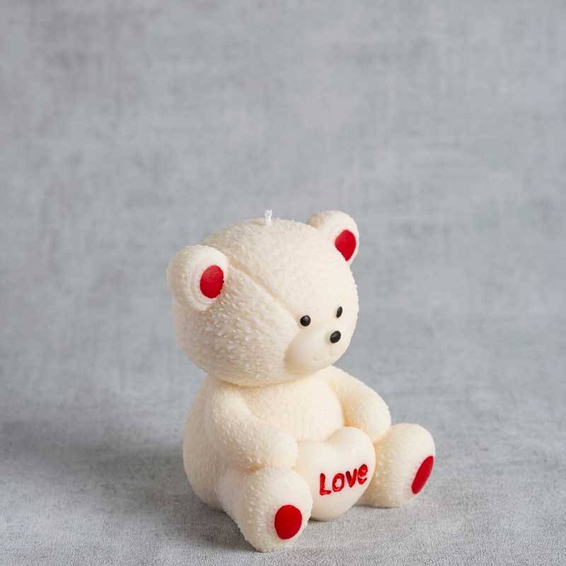 Bougie ourson Thérine en cire de colza, cœur Love coloré à la main, création artisanale française