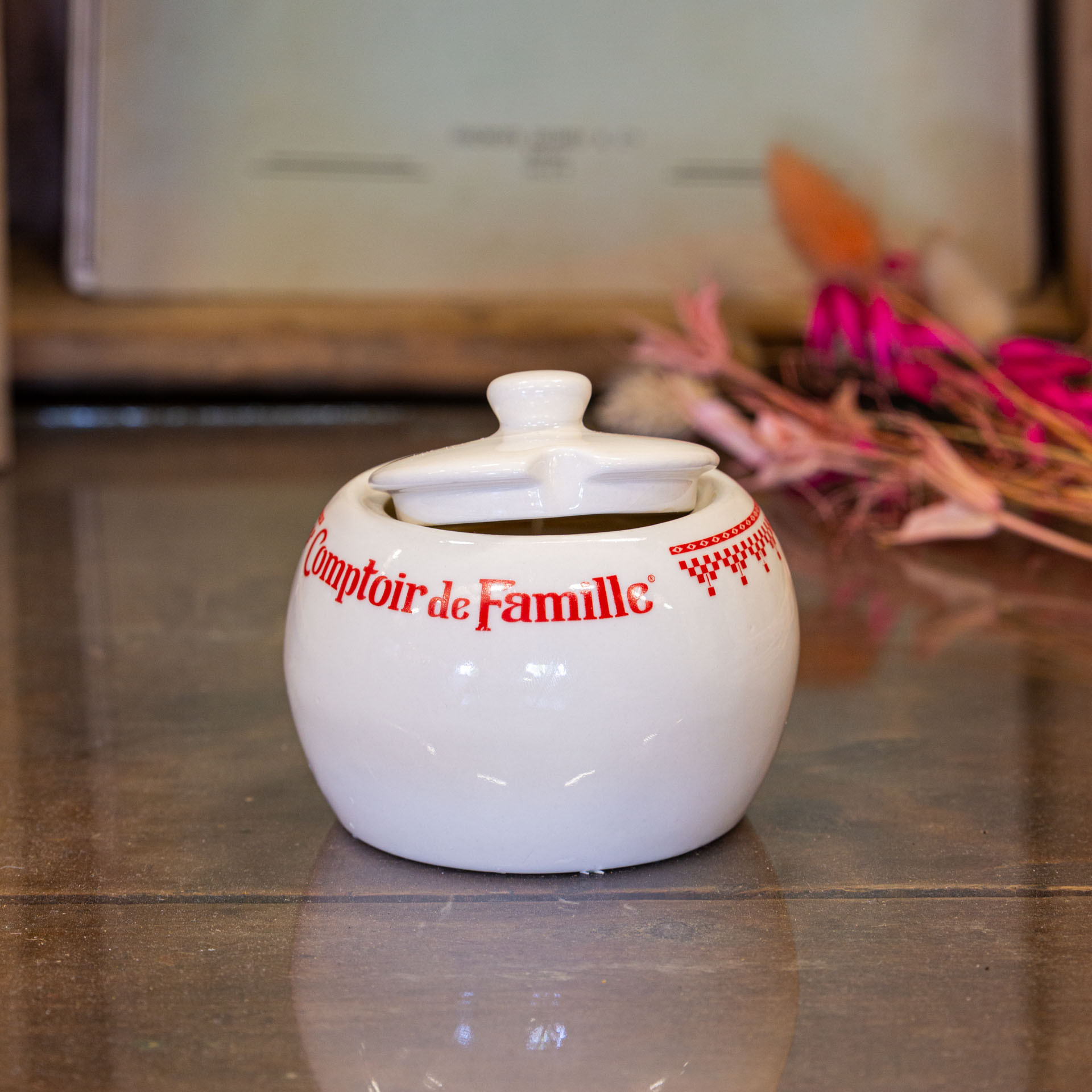 Chaque bougie est nichée dans un pot ancien de la marque Comptoir de Famille, connu pour ses objets inspirés du patrimoine français. Ce choix illustre une démarche d’upcycling et de valorisation des objets existants. Le pot, une fois la cire consumée, peut être réutilisé comme élément décoratif ou comme contenant pratique, prolongeant ainsi sa vie et son rôle dans votre intérieur.
