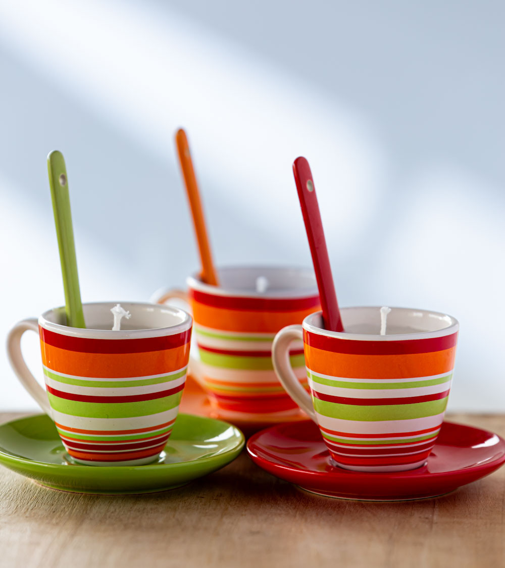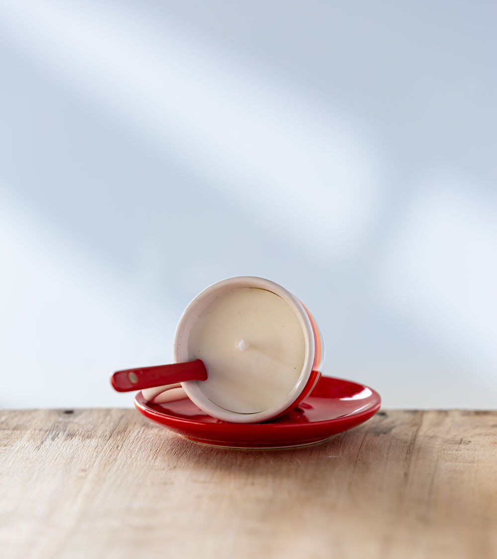 Le design de cette bougie parfumée se distingue par son contenant en tasse à café vintage, chinée avec soin et transformée en objet décoratif unique. Ce concept de réutilisation des tasses ajoute une note de charme rétro tout en incarnant une démarche écoresponsable. La bougie est disponible en plusieurs coloris, comme le vert anis, le rouge et l’orange, chacun apportant une nuance différente à votre intérieur. Que ce soit en ensemble ou individuellement, chaque bougie devient un élément décoratif et olfactif idéal pour créer une ambiance chaleureuse et parfumée.