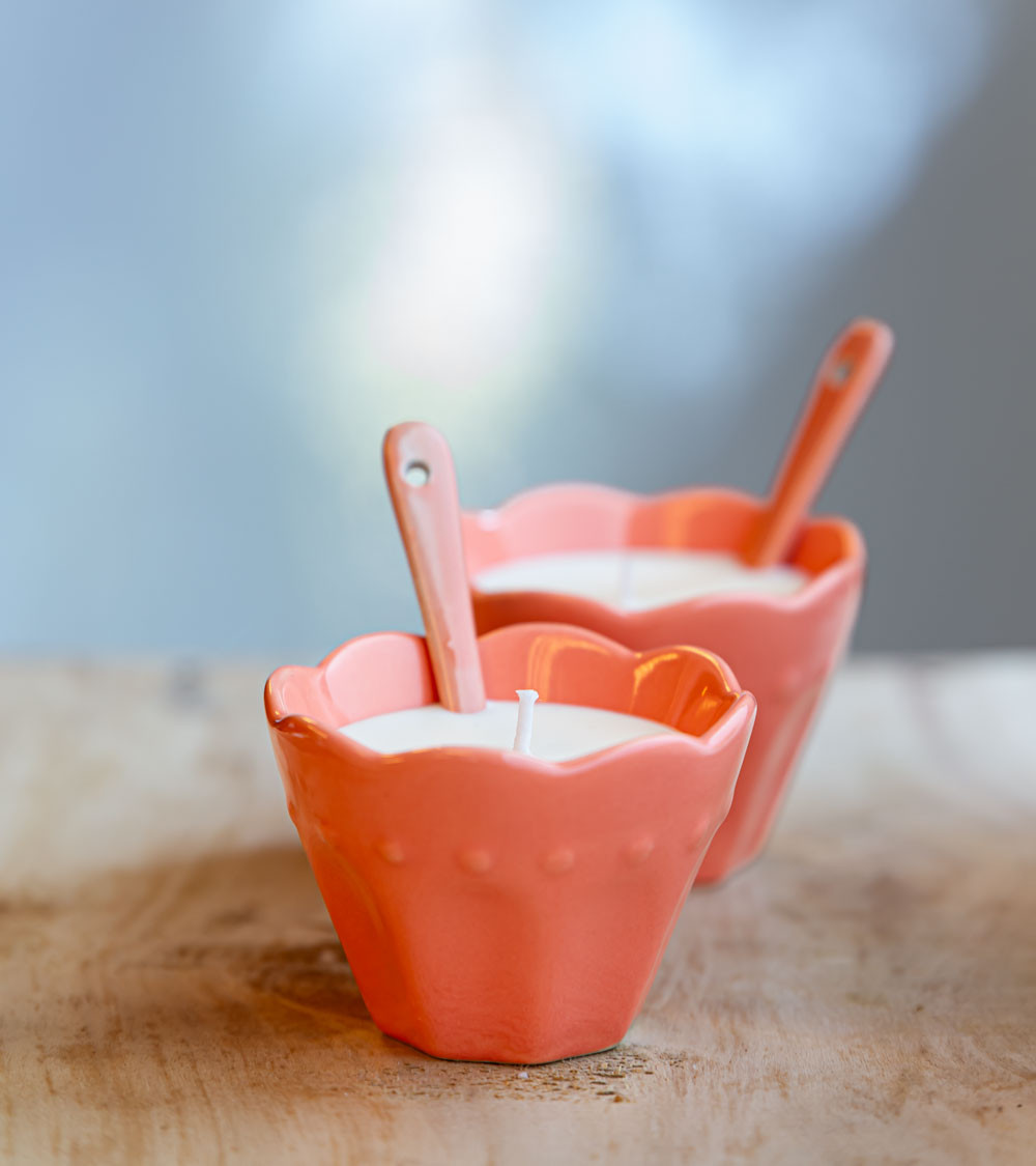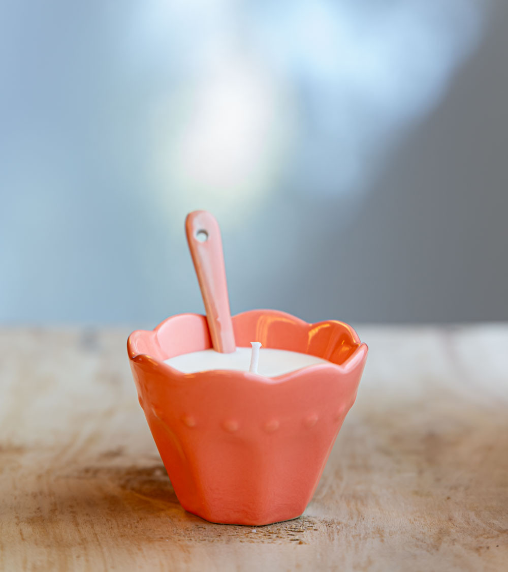 Disponible en quatre couleurs vibrantes – rose, violet, vert et gris – chaque bougie est vendue individuellement, permettant de les assortir selon votre intérieur. Leur design élégant, avec la petite cuillère assortie, apporte une touche rétro-chic à votre décoration, tout en étant un choix écoresponsable grâce à l’utilisation de contenants upcyclés.