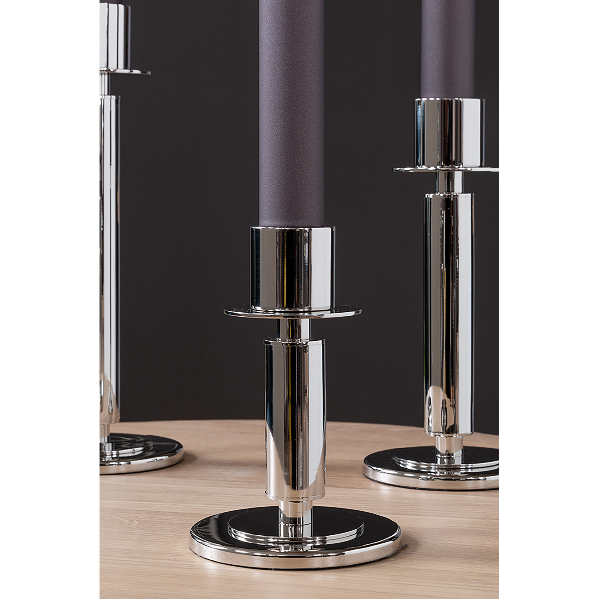 Avec sa finition lisse couleur argent, il est parfait pour apporter une touche raffinée à n'importe quel espace. D'une hauteur de 14,5 cm et d'un diamètre de 9,5 cm, il s'intègre harmonieusement dans une décoration moderne ou classique. Idéal pour accueillir une bougie, ce chandelier est un accessoire décoratif indispensable pour sublimer une table ou un buffet et créer une ambiance chaleureuse.