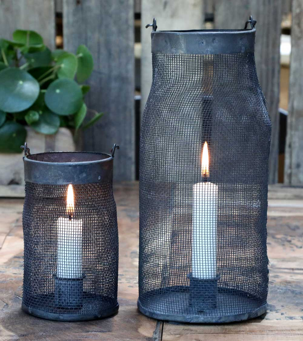Photophore / Bougeoir avec maillage fer - H 24 cm