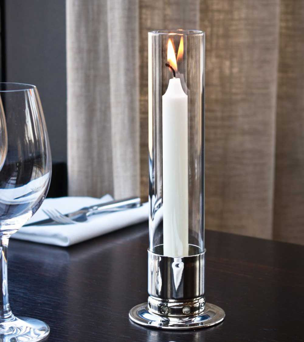 Avec sa finition en laiton nickelé, ce modèle se distingue par sa teinte argentée qui s’accorde aussi bien aux intérieurs classiques qu’aux ambiances modernes. Son verre tempête protège efficacement la flamme, empêchant les courants d’air de l’éteindre, et sécurise la combustion en réduisant les risques d’incendie.