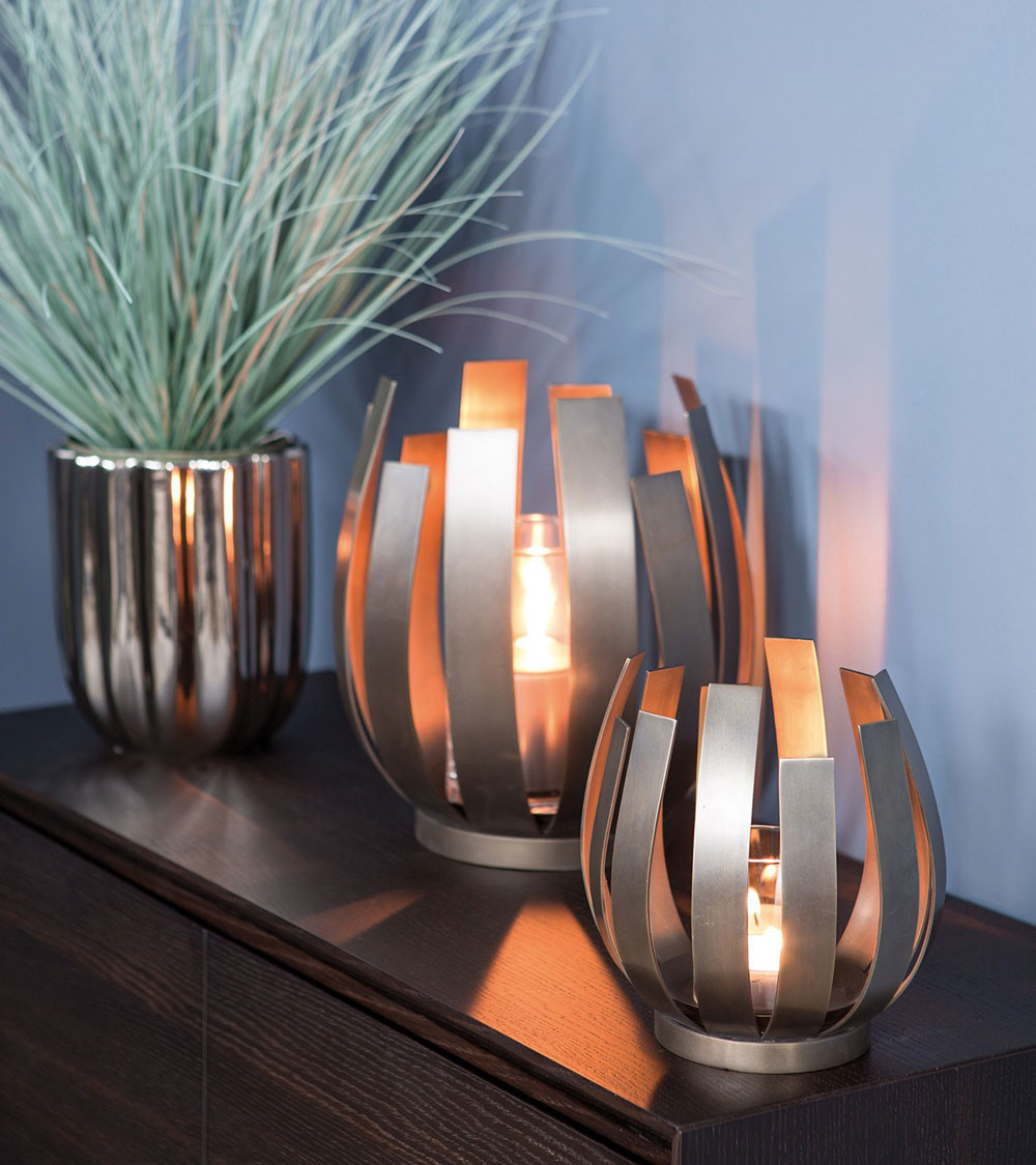 Comme une fleur enchanteresse qui déploie ses feuilles au soleil du matin : Le photophore ORFEA impressionne par son design inspiré de la nature et par le mélange équilibré d'un jeu délicat et d'un design simple. L'acier inoxydable raffiné complète l'apparence de haute qualité de cet accessoire de maison exclusif : comme s'ils s'ouvraient dans un mouvement lent, les éléments brillants laissent de la place dans leurs interstices pour les merveilleux effets de lumière créés par la bougie à l'intérieur. Deux tailles différentes sont disponibles.